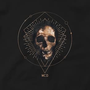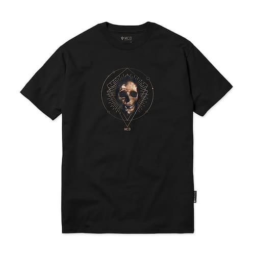 Camiseta MCD em malha penteada 30/1, estampa frontal, modelagem regular e etiquetas personalizadas.