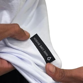 Camiseta MCD feita em malha penteada 30.1, estampa frontal e etiquetas personalizadas.