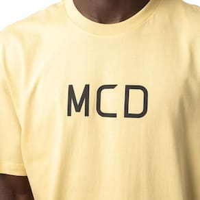 Camiseta MCD feita em malha penteada 30.1, estampa frontal e etiquetas personalizadas.