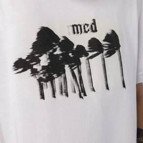 Camiseta Mcd feita em malha penteada 30.1, estampa frontal e etiquetas personalizadas.