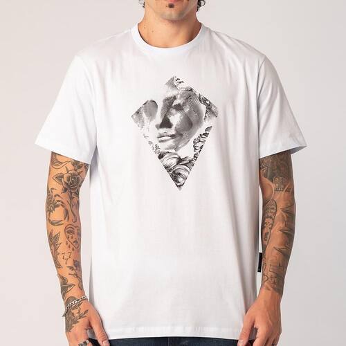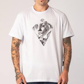 Camiseta Mcd feita em modelagem regular, malha 150g, estampa frontal e etiquetas personalizadas.