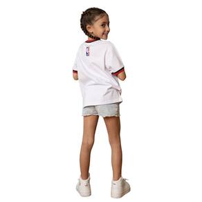 Camiseta com acabamentos em retilínea, apresenta a estampa do clube em destaque e etiqueta termocolante da NBA. Confeccionada em tecido meia malha penteado, que oferece grande durabilidade, maciez e conforto. Composta por fibra natural de algodão, minimiza as chances de causar alergias.