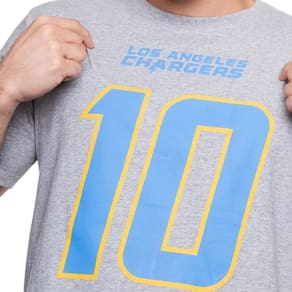 Mostre sua paixão pelos Los Angeles Chargers e celebre o talento do quarterback Justin Herbert com esta camiseta oficial da NFL. Feita para os verdadeiros fãs, esta peça combina estilo e conforto, perfeita para qualquer ocasião, seja assistindo ao jogo, treinando ou no seu cotidiano. Estampa traseira com o nome "HERBERT" e o número "10", destacando o protagonismo de Justin Herbert na equipe dos Chargers.