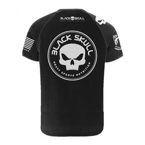 Camiseta Padrão Black Skull confeccionada em tecido dry fit, com estampa exclusiva nas costas e na frente.
