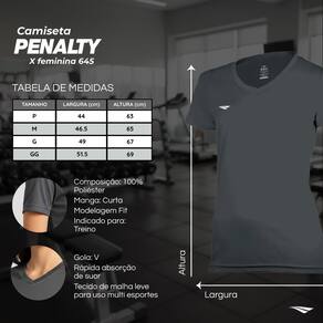 - Camiseta Penalty X Feminina Preta - Composição: 100% Poliéster - Cor predominante: Preto - Indicado para: Treino - Gênero: Feminino - Origem: Nacional - Logo Penalty aplicada no peito - Manga: Curta - Gola: V - Tecido de malha leve para uso multi esportes - Rápida absorção de suor - Modelagem Fit