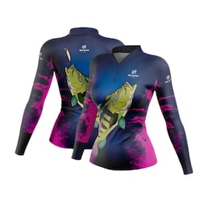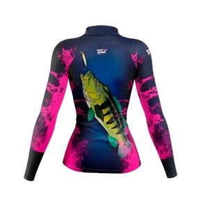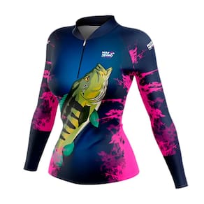 Camiseta Pesca Esportiva Mar Negro Infantil Feminina Tucunaré Rosa Premium UV50+