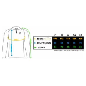 Gg ------- Tórax - 124cm / Comprimento - 76cm / Manga - 78cm
