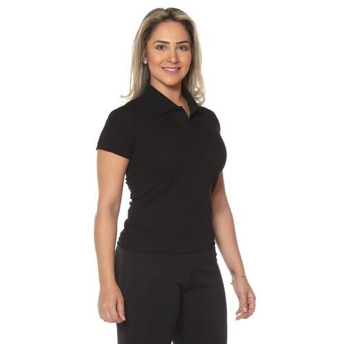 Camiseta Polo Feminina Baby Look - Preto - PP