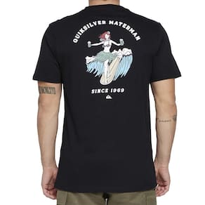 Camiseta QuikSilver feita em meia malha, silk localizado no peito com 1 cor e silk costas com 5 cores e etiqueta aplicada na manga esquerda de quem veste.