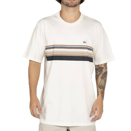 Camiseta QuikSilver feita em modelagem regular, meia malha, logo bordado e estampa da largura do tórax e etiqueta aplicada na manga do lado esquerdo de quem veste.