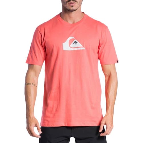 Camiseta Quiksilver básica, tecido em meia malha 30/1 fio cardado, silk frontal, etiqueta localizada na manga e etiquetas personalizadas.