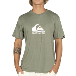 Camiseta QuikSilver feita em modelagem regular, meia malha, estampa aplicada na frente e etiqueta aplicada na manga do lado esquerdo de quem veste.