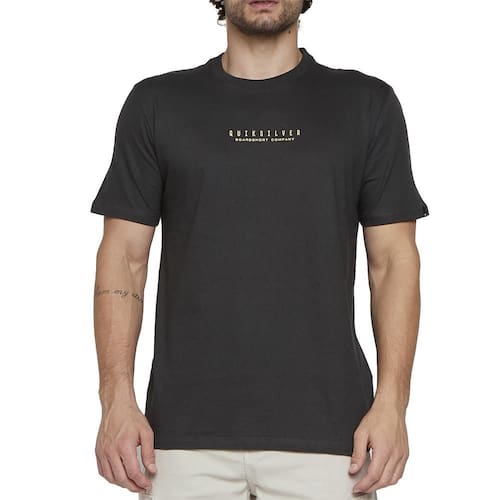 Camiseta QuikSilver feita em modelagem regular fit, meia malha, silk centralizado na frente com 1 cor e silk nas costas com 3 cores e etiqueta aplicada na manga esquerda de quem veste.