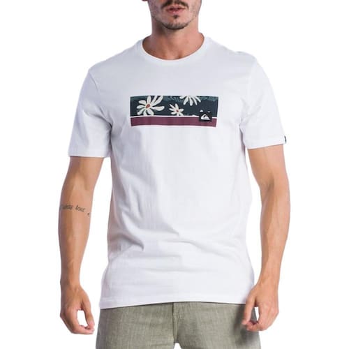 Camiseta Quiksilver básica, tecido em meia malha 30/1 fio cardado, silk frontal, etiqueta localizada na manga e etiquetas personalizadas.