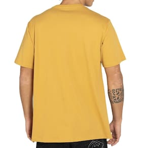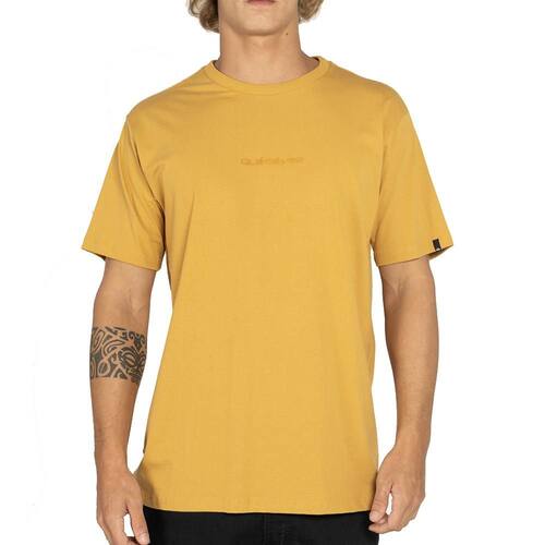 Camiseta QuikSilver feita em modelagem regular, meia malha, arte em relevo 3D aplicada na frente e etiqueta da marca aplicada na manga do lado esquerdo de quem veste.