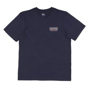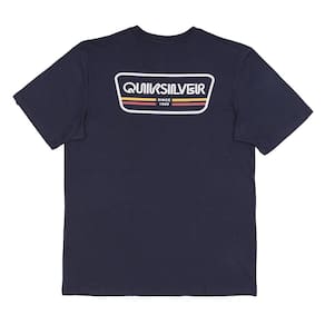 Camiseta QuikSilver feita em modelagem regular fit, meia malha, silk localizado no peito e nas costas com 3 cores e etiqueta aplicada na manga esquerda de quem veste.