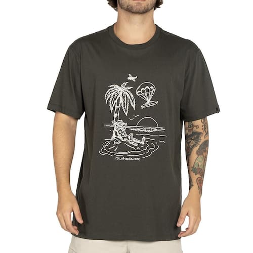 Camiseta QuikSilver feita em modelagem regular, meia malha, estampa aplicada na frente e etiqueta aplicada na manga do lado esquerdo de quem veste.