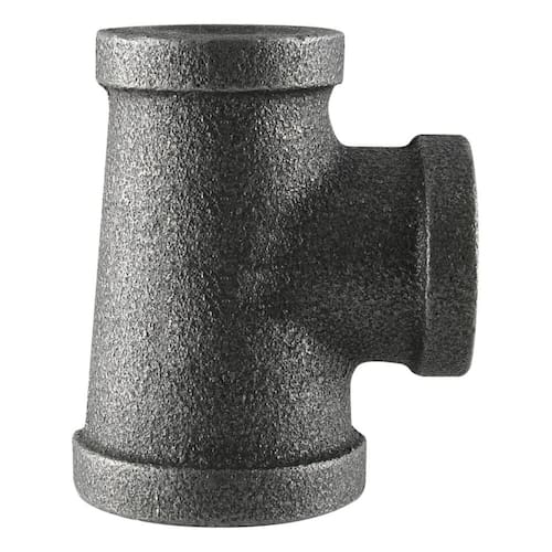 - 1 x 1 x 1/2 polegada camiseta preta maleável reduzindo