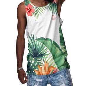 Camiseta Regata Havaiana Folhas e Flores Vermelhas - Branco - G