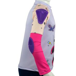 Confeccionada em tecido macio e leve, ela proporciona sensação agradável ao toque, permitindo liberdade de movimento. Sua parte traseira possui material respirável, que favorece a circulação do ar e mantém a criança fresca mesmo nos dias mais quentes. Com proteção solar UV 50+, ela oferece segurança contra os raios solares, além de contar com proteção adicional nos ombros e cotovelos, garantindo ainda mais proteção durante brincadeiras e aventuras.