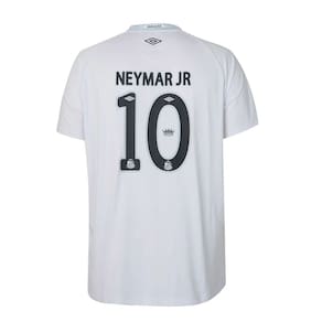 Nome: Camiseta Umbro Santos Torcedor Of I 25 Gênero: Masculina Indicado para: Futebol Detalhes: Possui o nº 10 estampado com o nome do jogador "Neymar Jr"Composição: Frente: 100% poliéster. Costas/mangas/recortes: 97% poliéster, 3% elastanoGola: Gola em V Manga: Curta Marca: Umbro Código do artigo: U31S03921-282