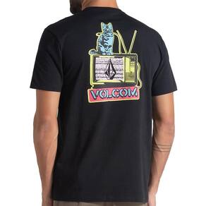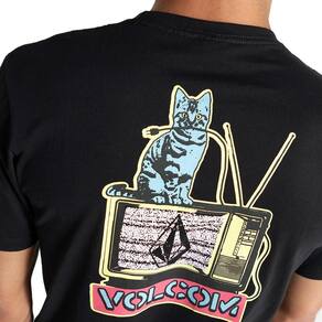 Camiseta Volcom feita em modelagem regular, meia malha 30.1, silk frente e costas, assinatura Volcom na manga, etiqueta internae viés contrastante.