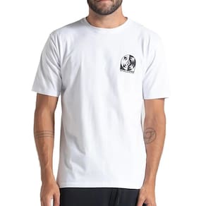 Camiseta Volcom feita em modelagem regular, meia malha 30.1, silk frente e costas, assinatura Volcom na manga, etiqueta interna e viés contrastante.