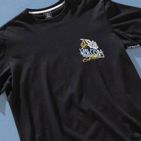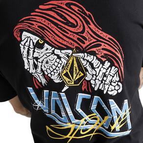 Camiseta Volcom feita em modelagem regular, meia malha 30.1, silk frente e costas, assinatura Volcom na manga, etiqueta interna e viés contrastante.