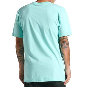 Camiseta Volcom feita em modelagem regular, meia malha 30.1, silk frontal, assinatura Volcom na manga, etiqueta interna e viés contrastante.