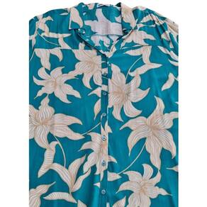 Com uma estampa floral delicada em tons de verde e bege, a peça traz um visual elegante e atemporal, ideal para compor looks tanto casuais quanto mais sofisticados.