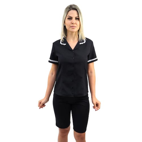 A Camisete ACINTURADA de COPEIRA CAMAREIRA BABÁ GOVERNANTA é confeccionada em Oxford.