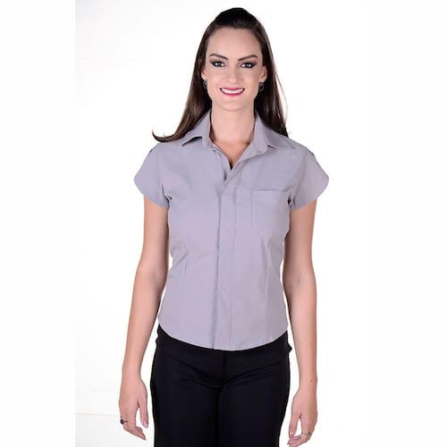 Especificações: Camisete Feminina Profissional Manga Curta Tecido de Poplim - Cinza Claro