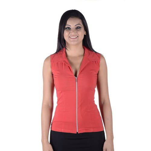 Especificações: Camisete Feminina Profissional Tecido em Poplin sem Manga - Vermelha