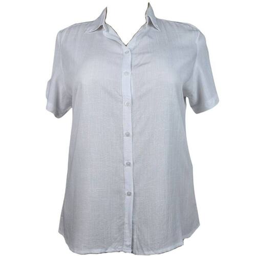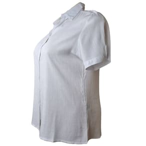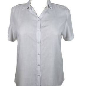 Com fechamento em botões frontais e gola tradicional, essa camisete é versátil, podendo ser combinada tanto com saias como com calças, perfeita para o trabalho ou ocasiões mais casuais.
