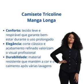 Camisete Tricoline Manga Longa Sofisticação e Conforto para seu Dia a Dia A camisete tricoline manga longa é confeccionada em tecido 100% algodão tricoline de alta qualidade, com colarinho rígido com entretela, botões na cor do tecido e um bolso superior frontal, oferecendo elegância e praticidade em ambientes formais.