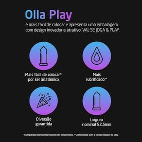 Camisinha Olla Play 6 Unidades Indicação: Abrir somente na hora de uso. Não compre se a embalagem estiver violada. O preservativo é o método contraceptivo mais eficaz para prevenir infecções sexualmen Ean: 7896222721181 Ean: 7896222721181