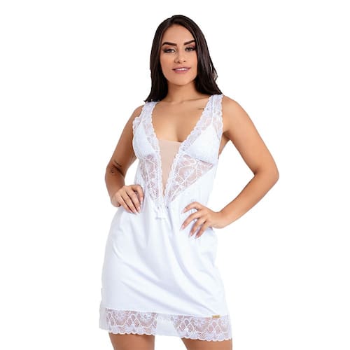 A Camisola em renda e tule Jaqueline é muito elegante. O tecido macio e leve permite uma noite muito especial. Com um decote em "v" e um designer moderno, essa camisola é para aquelas mulheres vaidosas que amam conforto e elegância na hora de dormir. Nas costa nua possui um decote em formato de “v” e rendas nas orlas também! Aviso: Imagens meramente ilustrativas do modelo. As rendas podem variar de acordo com o lote do produto. P (Bojo 40) BolhaM (Bojo 42) CasquinhaG (Bojo 44) CasquinhaGG (Bojo 46) Casquinha P (Indicado para manequins tamanho 36/38)M (Indicado para manequins tamanho 38/40)G (Indicado para manequins tamanho 42/44)GG (Indicado para manequins tamanho 46/48) ESPECIFICAÇÕESRenda: 90% Poliamida 10% ElastanoTecido: 83% Poliamida 17% ElastanoTule: 82% Poliamida 18% Elastano Forro: 100% Algodão