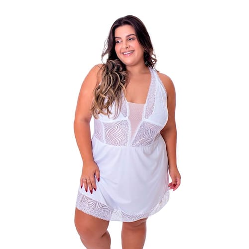 A Camisola Plus Size em renda e tule Isabelle é muito elegante. O tecido macio e leve permite uma noite muito especial. Com um decote em "v" e um designer moderno, essa camisola é para aquelas mulheres vaidosas que amam conforto e elegância na hora de dormir. Nas costa possui um detalhe em formato de “x” e rendas nas orlas também! Aviso: Imagens meramente ilustrativas do modelo. As rendas podem variar de acordo com o lote do produto. 48 (Indicado para manequins 46/48)50 (Indicado para manequins 48/50)52 (Indicado para manequins 50/52)54 (Indicado para manequins 52/54) ESPECIFICAÇÕES:Renda: 90% Poliamida 10% ElastanoTecido: 83% Poliamida 17% Elastano