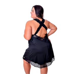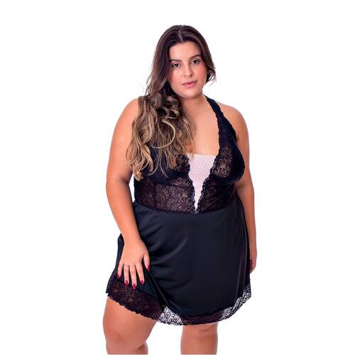 Camisola em Renda Luxo Plus Size Isabelle Preto - Preto - 50