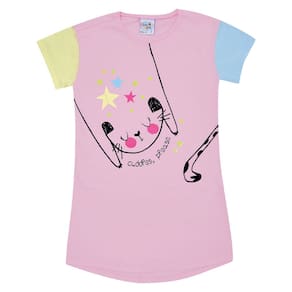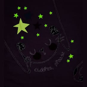 Aposte nesta peça confortável e fresquinha para sua gatinha! Confeccionada em meia malha, nossa camisola na cor rosa possuí uma divertida combinação de cores e estampas, a manga esquerda colorida na cor lima e a direita na cor nuvem, a estampa de gatinha quando vestida passa a sensação de abraço na sua pequena com a frase “Abraços por favor”, a diversão da camisola não para por aí, pois as estrelas brilham no escuro, basta deixar alguns segundos sobre a luz branca e apagar a luz para a diversão começar antes do soninho!