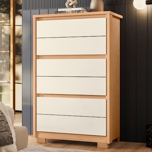 A Cômoda Unno Albatroz com 6 gavetas, ideal para organizar seu espaço com funcionalidade e estilo. Fabricado em MDP de 12 e 15mm, possui fundo em HDF de 3mm e gavetas com corrediças telescópicas, suportando até 5kg cada. Seu tampo e molduras de 25mm garantem resistência, suportando até 15kg. Conta com kit anti-tombamento e pés para maior estabilidade e segurança.