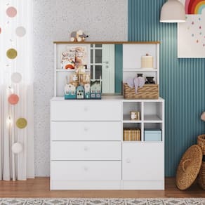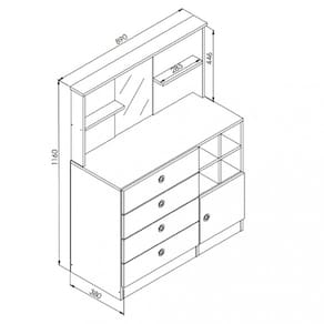 Caracter?sticas: 4 Gavetas 1 Porta 4 Nichos Espelho 45 x 30cm Estrutura em MDP Sistema anti-tomabmento