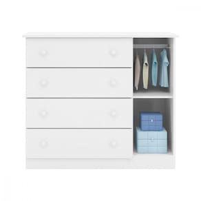 Características: Estrutura em MDP Acabamento em Pintura UV atóxica 4 Gavetas Corrediças telescópicas 1 Porta Dobradiças metálicas Puxadores em PVC Gavetas suportam até 5kg