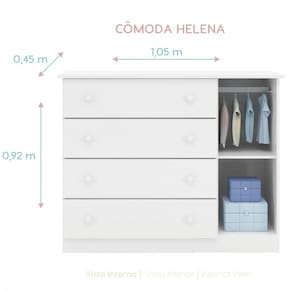A Cômoda Helena é perfeita para quem procura aliar funcionalidade e estilo. Com 1 porta e 4 gavetas, oferece uma solução prática para organizar roupas e acessórios com facilidade. Seu acabamento em pintura UV atóxica e alto brilho garante um visual sofisticado e uma superfície fácil de limpar, ideal para qualquer ambiente.