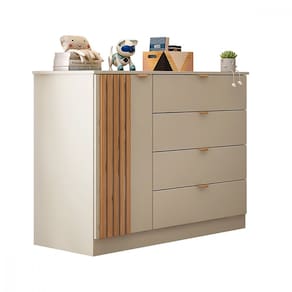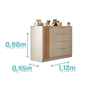Características: Estrutura em MDF Acabamento em Pintura UV atóxica Ripado 4 Gavetas Corrediças telescópicas 1 Porta Dobradiças metálicas Puxadores em alumínio Gavetas suportam até 5kg