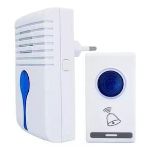Campainha digital sem fio tmd - campainha sem fio com alcance de até 100 metros em campo aberto; - material de qualidade, sendo resistente a exposição ao sol; - design moderno e elegante, não havendo nenhum fio, permitindo uma instalação fácil e segura; - possui 36 toques ajustáveis, podendo personalizar sua campainha; - com alimentação via tomada elétrica 110v-220v ; - transmissor utiliza apenas 1 bateria 12v 23a já inclusa ;