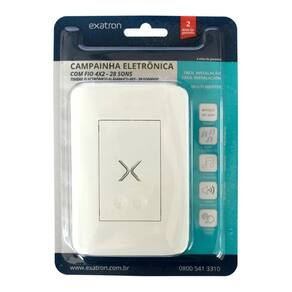 Itens Inclusos: 01 Campainha Eletrônica Touch c/Fio Bivolt 28 Toques 4x2 Branca de embutir excelente acabamento A Campainha Eletrônica Com Fio 4x2 da Exatron LECO4004 é ideal para uso residencial e comercial. Com seu Design clean e sua tecnologia touch oferece uma solução mais segura, enquanto embeleza e harmoniza o ambiente. Possui uma lista de 28 opções de sons polifônicos com 3 níveis de volume configuráveis. Especificações Técnicas: - Tensão: 100 - 240 V 50/60Hz CONSUMO: 1W - Intensidade de Volume: três opções ajustáveis por botão touch - Opções de campainhas: 28 opções de toques com sons polifônicos selecionáveis utilizando botão touch - Intensidade sonora: entre 50dB e 80dB variando de acordo com o volume e toque selecionado Condições do teste: altura de 1,2m e distância de 2m - Classificação de ruído: descontínuo - Dispositivo sonoro tipo R2: acionado por com a duração de emissão sonora conforme o toque selecionado - Memória de programação: após a campainha ser desenergizada o som e o nível de volume selecionados permanecem os mesmos quando o dispositivo for ligado novamente - Instalação em caixa 4x2 - Temperatura de operação: 0C a 40ºC - Composição: componentes plásticos, componentes eletrônicos e ligas metálicas Marca: Não Informado