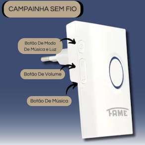 Apresentando a Campainha Sem Fio Bivolt com Bateria da FAME: O Toque de Inovação para seu Lar Liberte-se dos Fios: Instalação sem complicações, sem necessidade de fios, trazendo praticidade imediata para sua casa. Personalização Ampliada: Escolha entre uma vasta seleção de 58 melodias e ajuste o volume em 4 níveis diferentes para uma experiência sonora totalmente adaptada ao seu gosto. Resistência e Confiabilidade Aprimoradas: Projetada para enfrentar os elementos, esta campainha é resistente à chuva e oferece função de memória inteligente, mantendo suas configurações preferidas mesmo quando desligada. Transforme sua casa com a Campainha Sem Fio Bivolt com Bateria da FAME, oferecendo não apenas praticidade, mas também personalização e confiabilidade incomparáveis. Tensão Nominal: AC 127-240V, 50-60 Hz Volume: 25-85 dB Frequência de trabalho: 433 MHz Potência de espera do : 0,5 W Transmissor: Bateria Modelo 23A 12V Potência de operação do transmissor: 10 mW operado por plugue Marca: Fame Ref.: 4368 Marca: Não Informado Ean: 7896039743680