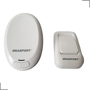 Campainha sem fio bivolt 52 toques Brasfort Marca: Brasfort Modelo: 7891 Material de fabricação: Corpo em plástico ABS Cor: Branco Para utilização em residências, lojas, salas comerciais, industrias, ções e etc Transmissor botão a pilha e com plug para tomadas Bivolt . Fácil instalação, não requer fios de instalação. Alcance de 100 m em áreas livres, podendo variar , pois o alcance sem fio é afetado por obstáculos, como por exemplo: paredes, árvores e etc; 52 tipos de sons. Com controle de volume. Transmissor resistente à chuva. Baixo consumo de Energia. Homologado pela ANATEL. Alimentação transmissor Botão a pilha 1 x 12 V 23 A inclusa , Bivolt 10 a 250. Permite sincronização com até 10 transmissores Botão para o mesmo . Compatível apenas com transmissor Botão 7892 Brasfort. : 1 ano para defeitos de fabricação