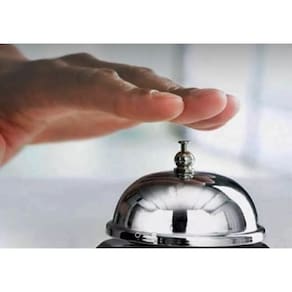 Campainha mesa para recepção pizzaria hotel cem porcento metal descrição: feito em metal inox e base em metal preto tamanho: 8,5 cm diâmetro x 5 cm altura funcionamento: manual